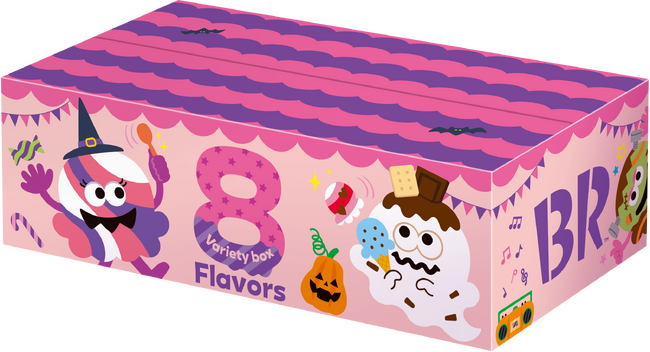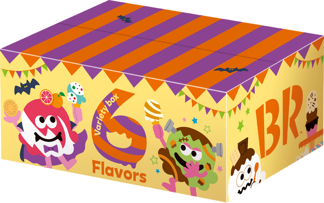 お好きなアイスクリームをお持ち帰りできるテイクアウト専用の「バラエティボックス」のハロウィン限定BOX!今年は6個入りと8個入り限定で登場します!かわいくておかしな なかまたちがパーティーをしているキュートなデザイン。ホームパーティーが華やぐバラエティボックスで、おうちでハロウィンを楽しんでね♪