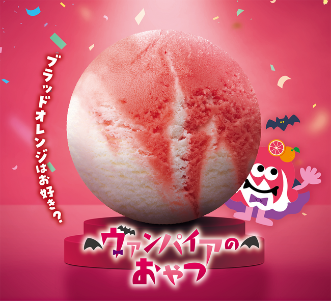 真っ赤なブラッドオレンジソルベでヴァンパイア気分!グランマニエ香るアイスクリームとの相性も抜群で、ヴァンパイアもみんなも大好きな“おやつ”の完成♪