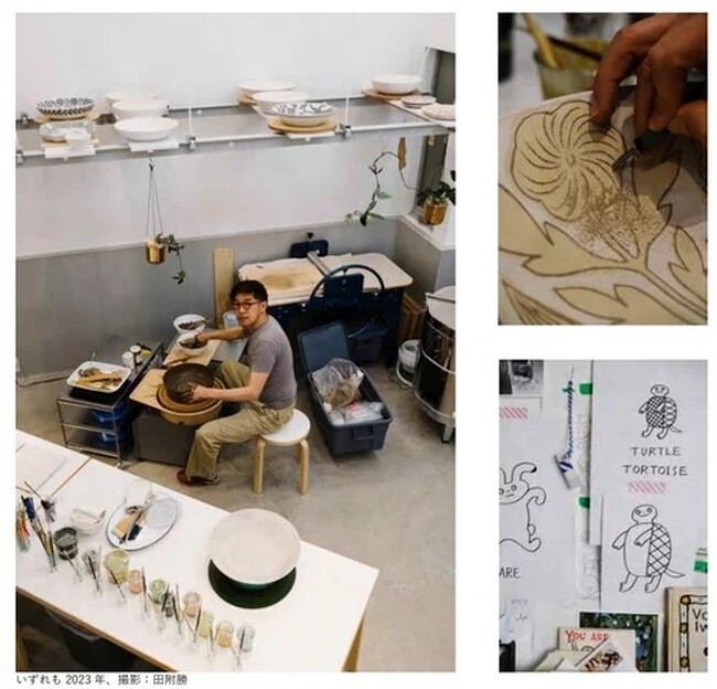 朝の8時頃からはじめて、12時になったらお昼を食べて、13時からまたやり出します。その日の予定を終えるまで手を動かすんですけど、普段はNetflixを流したり音楽を聴いたりしながらやりますし、蝋抜きや地塗りなどは家族も手伝ってくれます。集中してはいるけれど、根を詰めるというのとはちょっと違って、淡々と、という感じ。陶芸の作業は夕ごはんまでに終えて、夜は机に向かって絵を描くことが多いかな。僕の毎日は、こんなです。