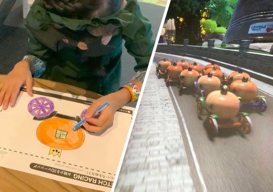アトラクションの世界も秋模様。自分で描いたお化けにタッチしてみると…?