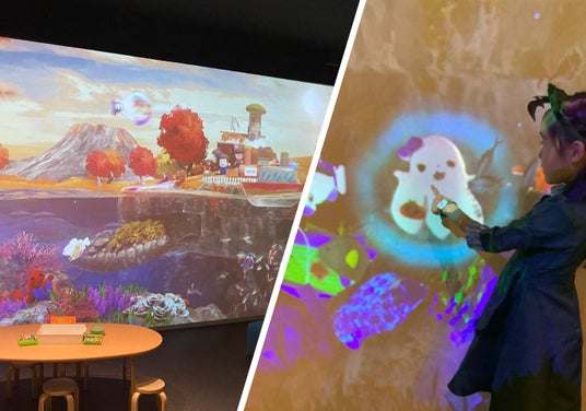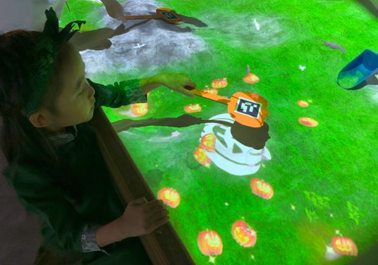 砂に触れると地形が変化するAR(拡張現実)砂遊びアトラクション「SAND PARTY!」に、カボチャ型の「魔法のステッキ」が登場!砂の上にステッキをかざすと、カボチャのお化けたちが次々に飛び出します。ハロウィンシーズンだけの摩訶不思議な“未来の砂遊び”をお楽しみください。