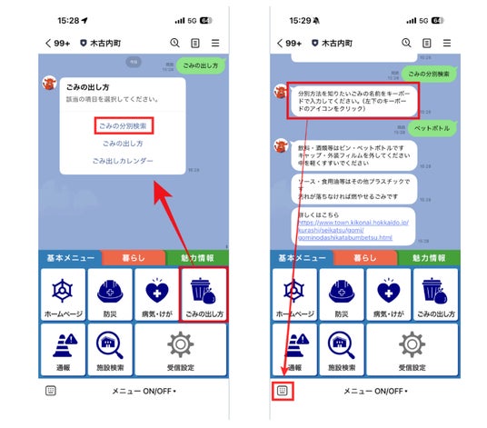従来はホームページを検索し、該当ページにアクセスすることで得ることができた情報ですが、今後はLINEのトーク画面から手軽に情報源にたどり着くことができます。