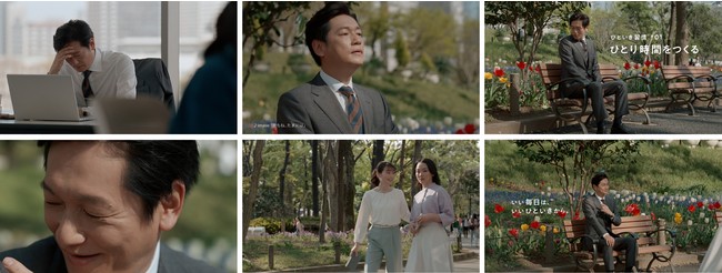 6月8日(水)より放映する新CM「ひといき習慣・マニフェスト」篇では、井浦さん・黒島さんがそれぞれ会社の上司・部下役で出演。オンとオフが曖昧になった忙しい日々の合間にも、意識的に「ひといき」をとり、自分のリズムを取り戻して前向きな気持ちになる様子を描いています。はたらく人のオンとオフをリアリティ溢れる表情で表現する井浦さんの演技や、黒島さん演じる若手社員のフレッシュな表情や呼びかけ、2人の初共演とは思えない本物の上司・部下のような自然体の掛け合いをぜひご覧ください。また、後日放送予定の「ひといき習慣 #1ひとり時間をつくる」篇、「ひといき習慣 #2プチ日光浴」篇では、井浦さんが自分の時間をつくってベンチでくつろいだり、カーテンを開けてプチ日光浴をするなど、具体的なひといきのつき方を実践して自分のリズムを整える姿を描きます。ひといきをついてリラックスする井浦さんの「オフ顔」にぜひご注目ください。