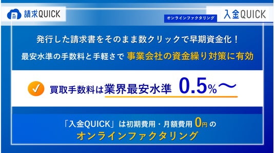 ■ 「入金QUICK」は業界最安水準の手数料で中小企業の資金化を支援