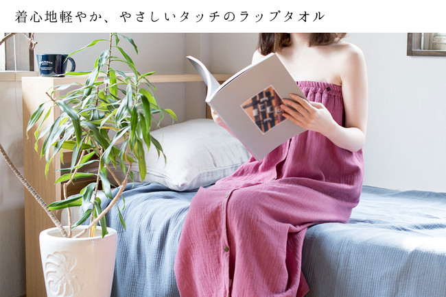 着心地軽やか、さらさらとした優しいタッチが特徴のラップタオルです。