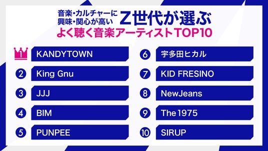5.音楽・カルチャーに興味・関心が高いZ世代がよく聴く音楽アーティストTOP10