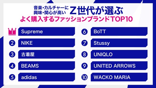 6.音楽・カルチャーに興味・関心が高いZ世代がよく買い物をするファッションブランドTOP10