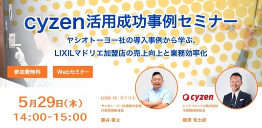 スマートフォンで簡単に使えるデスクレスワーカー向けの業務効率化アプリ「cyzen(サイゼン)」を開発・販売するレッドフォックス株式会社(本社:東京都港区、代表取締役社長:横溝 竜太郎)は、LIXILマドリエ加盟店や建築資材販売業、住宅関連サービス業向けに、「cyzen活用成功事例セミナー」を開催いたします。