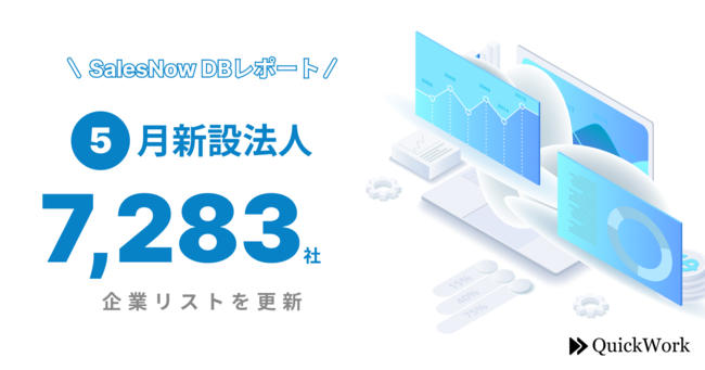 「データとテクノロジーで、ビジネスを加速させる。」をミッションに掲げ、日本全国約510万社の企業データを基盤に営業の効率化を支援する「SalesNow」を展開してきた株式会社QuickWork(本社:東京都渋谷区、代表取締役:村岡 功規、以下「QuickWork」)は、日本全国約510万社の企業情報を網羅した日本最大級のデータベースを誇る「SalesNow DB」において、5月新設法人7,283社の情報を更新したことをお知らせします。