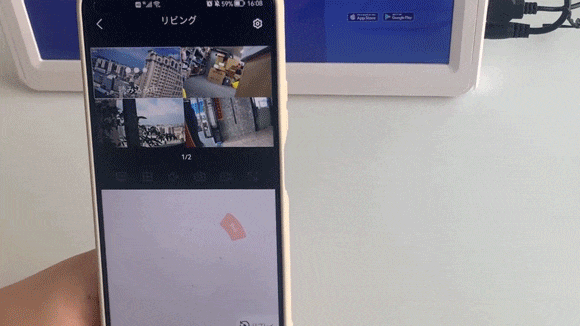 モニターとスマホで録画映像を再生することができ、映像をチェックすることに便利。