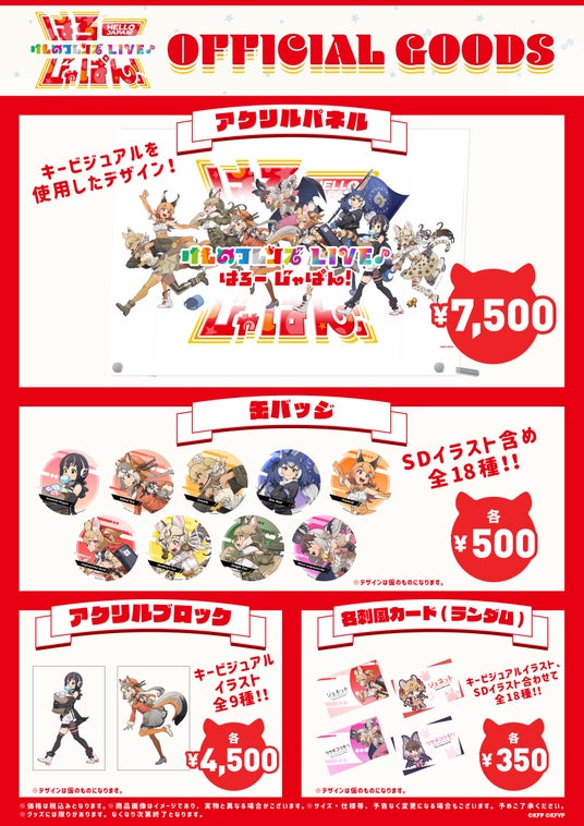 【オンライン販売】 「けものフレンズ LIVE♪ はろー じゃぱん!」グッズ情報