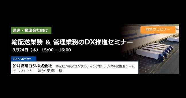 2022年3月16日(水)、ESRIジャパン株式会社が主催するセミナー「輸配送業務&管理業務のDX推進セミナー」にて、船井総研ロジ株式会社(東京本社:東京都千代田区、代表:菅重宏、以下「船井総研ロジ」)のDXコンサルタントが「物流会社が取るべきDX戦略」をテーマに講演します。