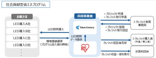 東京センチュリー株式会社(本社:東京都千代田区、代表取締役社長:藤原 弘治、以下「当社」)は、アイリスオーヤマ株式会社(本社:宮城県仙台市、代表取締役社長:大山 晃弘、以下「アイリスオーヤマ」)と、LED照明の導入によるJ-クレジットの創出および寄付による社会貢献を目的としたプログラム型※1のJ-クレジット創出事業(以下「社会貢献型省エネプログラム」)の開始について、基本合意に至りました。