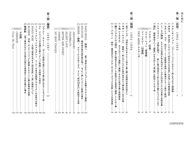 逆に、これから中森明菜を聴いてみよう、もしくは、当時聴いていたものの、音楽的に再確認したいという方には、バランスの取れたリスナーズ・ガイドになるはずだ。特に、昨今の「中森明菜ブーム」の中でほとんど顧みられない、『SOLITUDE』を皮切りとした「アー バン歌謡」(本文参照)については、他の同様の書物や記事にはない視点だと自負したい。