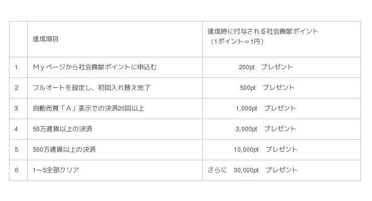 2.社会貢献ポイント付与時に、既に口座を解約されているお客様につきましては、キャンペーンの対象外とさせていただきます。