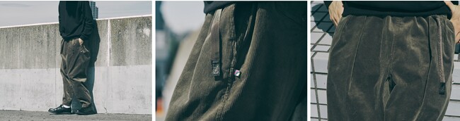 Gramicciの人気マテリアルであるストレッチコーデュロイを使用したワイドパンツ