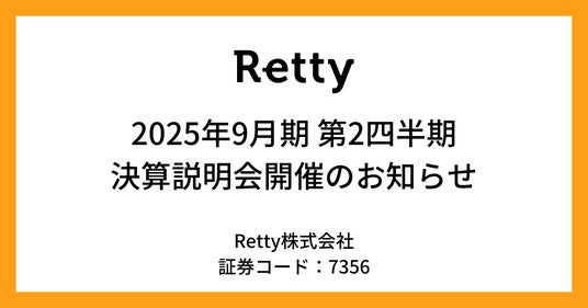 実名口コミのグルメ情報・予約サイト「Retty(レッティ)」を運営するRetty株式会社(本社:東京都港区、代表取締役 執行役員CEO:武田 和也、証券コード:7356)は、2025年5月14日(水)19:00より「2025年9月期第2四半期 決算説明会」をオンラインにて開催します。