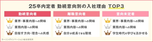 そこで当社は、25卒の内定者が勤続・離職に対して、どのような意向があるか明らかにすべく、内定時点での勤続意向と入社理由の関係、また内定辞退・早期離職を防ぐために必要な支援について、調査した結果を公表します。