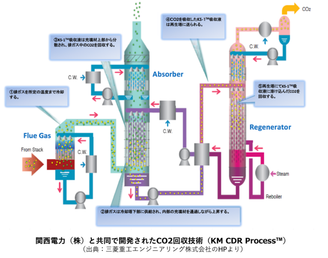 同プラントのシステムの肝となるのは、同社が独自開発したアミン吸収液関連技術です。当該技術も活用することにより同社のCO2回収率は現状の業界標準の90%を大きく上回り、排ガスからのCO2回収率は最大99.8%に到達しています。
