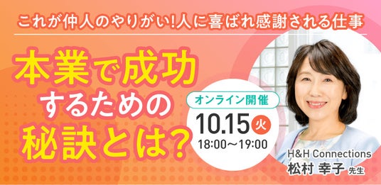 東京エリアで相談所運営をされている、H&H Connections 松村幸子先生(https://hh-connections.co.jp/) より効果的な集客、高いお見合い成立率×成婚率の秘訣など結婚相談所運営の裏側についてお話いただきます!