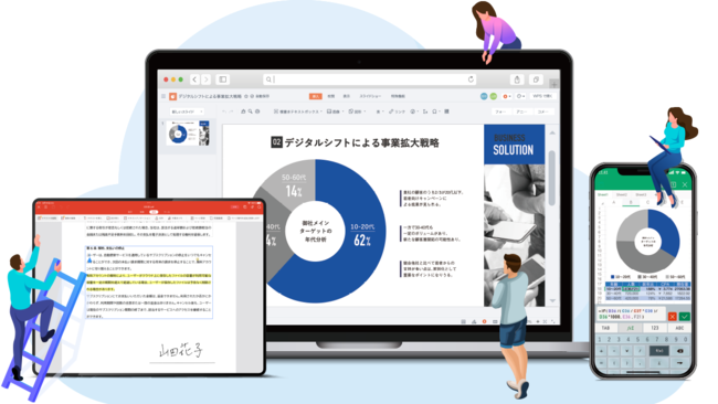 「WPS Cloud」は、文書作成、表計算、スライド作成、PDF編集機能を搭載し、各ファイルを保存、共有できるオンラインストレージを備えたクラウド型オフィスソフトです。インターネット環境であれば、どこからでもWebブラウザ、PCデスクトップアプリ、モバイルアプリでファイルを閲覧、編集し、ストレージ上に保存したファイルを共有するだけで、Webブラウザ上で同時に共同編集できます。