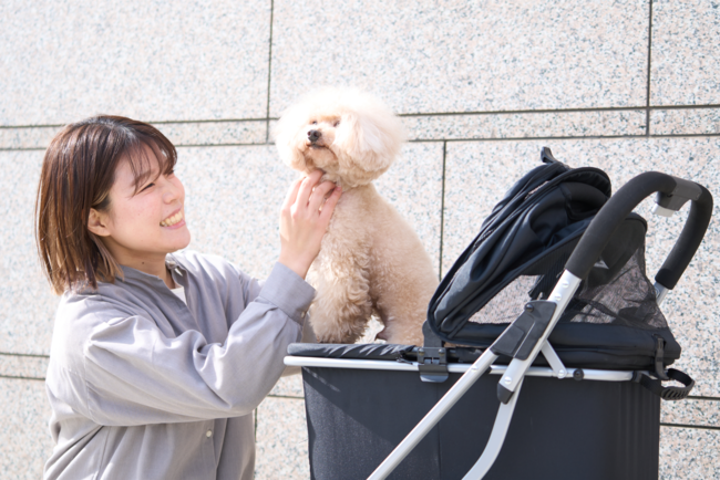 【ワンタッチでカンタン折りたたみ】お出かけ先でも置き場に困らない、コンパクトなペットカート