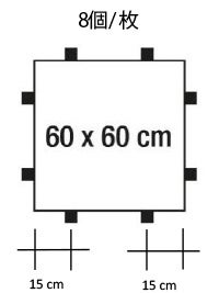 使用方法は、セラミックタイル二重床システムの施工後、タイル側面に接着剤で固定するのみで、後からの取り付けも可能です。必要個数は600×600mmサイズのタイルで1枚あたり8個。セラミックタイルは「ユーロセラムT20コレクション」として全4商品、12色ご用意しています。