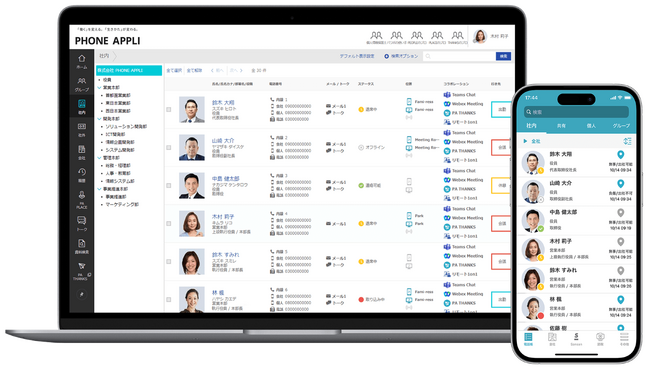 PHONE APPLI PEOPLEは、組織を強くするコミュニケーションポータルです。キーワードやスキルなどで社内の専門家を、名刺データからお客様や取引先を、それぞれ簡単に見つけだし、最適なツール(チャット、メール、電話、Web会議等)でコミュニケーションがとれ、コラボレーションを活性化させます。離れて働くことが当たり前になった時代に、「誰に相談するのが最適なのか?」を解決するサービスとして、多様な働き方の実現を目指す働き方改革推進企業様をサポートしています。