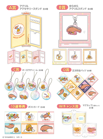 2023年でデビュー【10周年】を迎えた、ぐでぐでやる気のないたまご『ぐでたま』、おいしく食べてもらいたい…という想いで産まれてきた『KIRIMIちゃん.』が特別コラボしたくじとなっております。【10周年】を記念したオリジナル描き下ろしデザインを使用した、ここだけでしか手に入らない可愛いアイテムが盛りだくさんです。