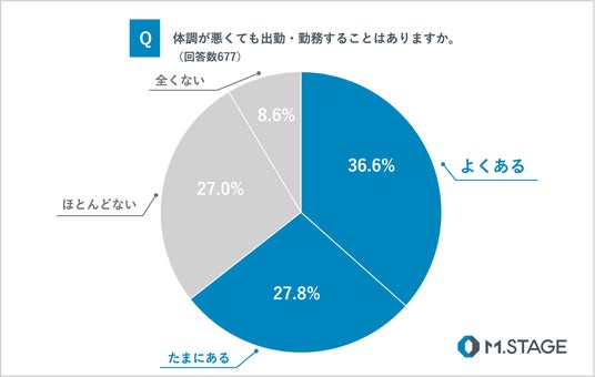 体調が悪くても出勤・勤務することが「よくある」、「たまにある」と回答した医師は約6割で、半数以上が体調不良でも業務を優先せざるを得ない現状が明らかになりました。