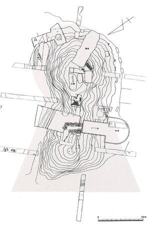 三ツ山古墳の全容を明らかにするために大きな障壁となっているのが、この古墳がこれまでたどってきた歴史です。現在は「閑静な住宅地の中にある公園の中の小高い山」という印象を持ちますが、この地はかつて、古墳から程近くにある坂津寺の境内の一部でした。江戸時代に、坂津寺の住職がこの地の景観を豊かにしようと、古墳に土を盛り三つの山に作り替えました(このことから「三ツ山」と名付けられました)。また、太平洋戦争中には、古墳内部に防空壕が造られ、その建設作業時に石室の一部が破壊されました。これらの影響で、本来は全長約38メートルだった古墳が、現在では約30メートルしか残っていません。
