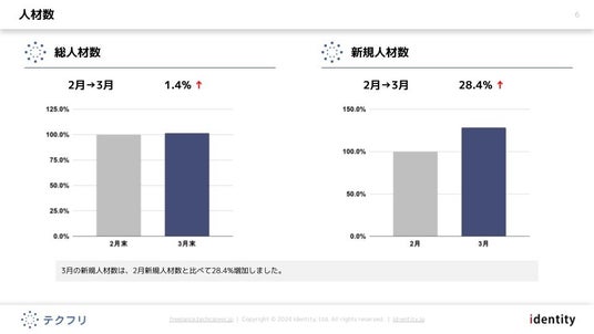 3月の新規人材数は、2月新規人材数と比べて28.4%増加しました。