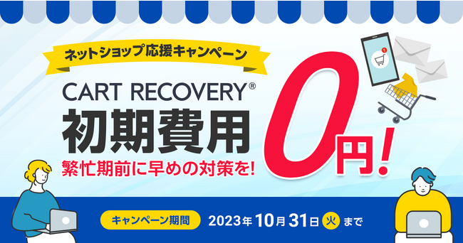カゴ落ち特化型MAツール「CART RECOVERY(R)」について、ECサイトを対象に2023年10月31日(火)までにお申込みいただいた方は、初期費用を無料でご提供させていただきます。また、併せて最大2カ月間の無料トライアル期間をご用意しております。
