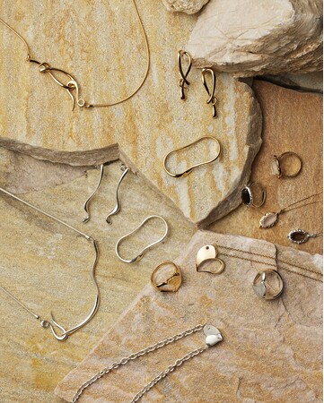 「感覚」を司る地のエレメントから着想した、大地のオーラを感じさせるストーンリングとネックレス。