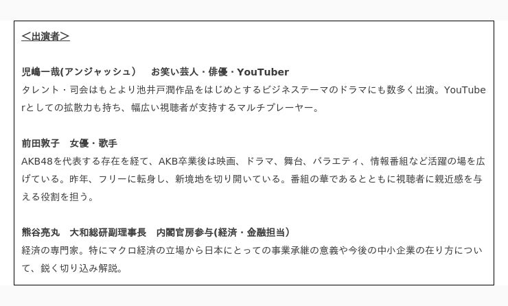 事業承継ドキュメント「その灯を消すな!」番組概要
