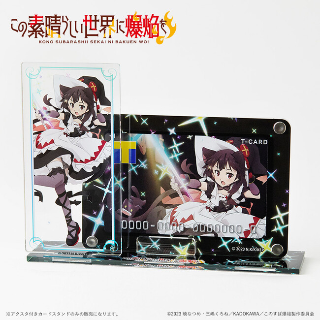 カルチュア・エンタテインメント株式会社は、“ワクワクが集まるECサイト”がコンセプトの「Tファンサイト」にて、TVアニメ「この素晴らしい世界に爆焔を!」とコラボレーションしたTカードの発行受付を開始します。本日4月7日(金)11:00より、Tカードの発行受付を開始するとともに、オリジナルグッズの「スライドカードケース」や「アクスタ付きカードスタンド」、「等身大タペストリー」の予約受付も開始いたします。
