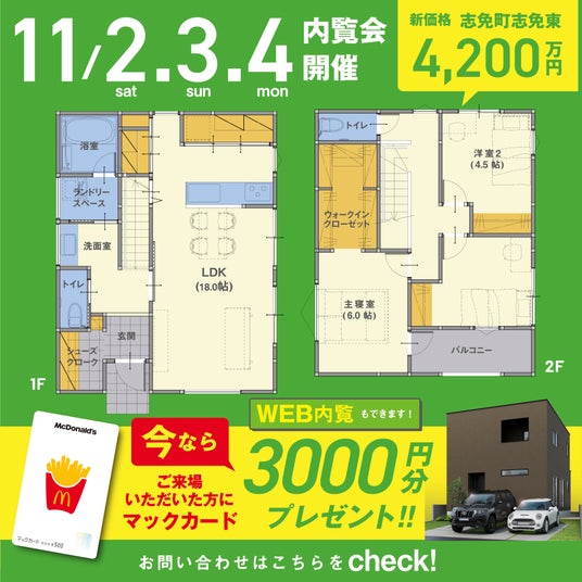 不動産資産管理会社の三和エステート株式会社 (本社:福岡市博多区博多駅南1丁目、代表取締役社長:石井 清悟)は、福岡県糟屋郡志免町に竣工した新築建売戸建「HAUS CONCEPT 志免東」と「HAUS CONCEPT 東公園台」の価格を改定し、11月2日(土)・3日(日)・4日(月)に内覧会を開催いたします。