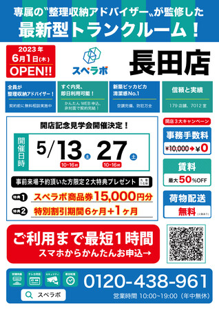 株式会社UKCorporation(本社:東京都港区)は「見学から契約、解約まで完全非接触・非対面!更にお申し込みからご利用まで最短1時間!」のトランクルーム【スペラボ】を6月1日(木)長田駅近くにオープン致します。