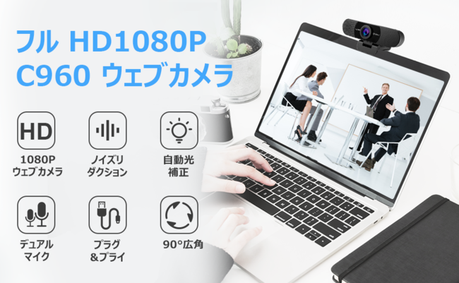 1080p高解像度なのでビデオ通話でも録画でも、クリアなディテールと鮮やかな色を滑らかな動画で映し出します。それにデュアルビルトイン全方向マイク付きwebカメラが、どの角度からでも明確な集音を保証できます。更に、照明条件に合わせて、光の状態を微調整し、鮮明な高解像度の画像と明るい画像を映り出せます。ビデオ通話、オンライン会議に最適!