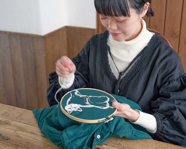 東京都生まれ。絶妙なバランスでチョイスしたモチーフを毛並みや質感、表情まで刺繍して話題に。繊細な中にどこかクスっと笑えるような作品を生み出し、さまざまなイベントや個展を開催。美術作品のほか、アパレルブランドとのコラボレーション、衣装、広告、メディアなど、その発表の場は多岐にわたる。