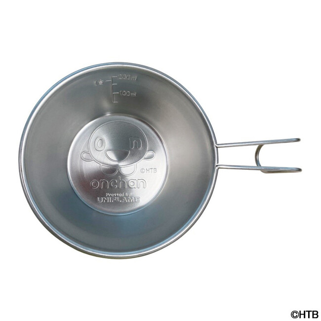 アウトドアメーカー「ユニフレーム」製のシェラカップ。カップの底面にonちゃんを刻印しました。