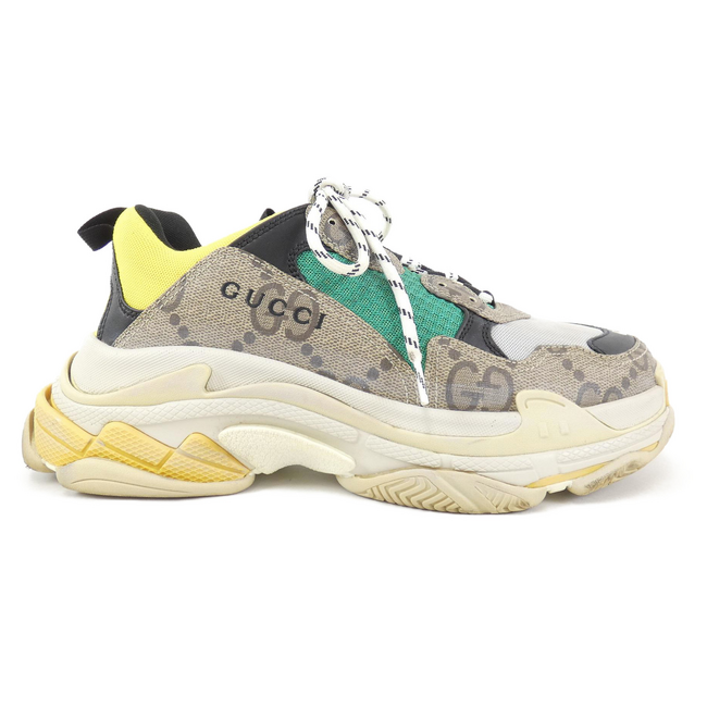 GUCCIとBALENCIAGAによる2021年のコラボレーションモデル。 GUCCIの象徴であるモノグラム柄をBALENCIAGAの代表モデルであるTriple Sに載せた 両ブランドのシンボルが合わさった一足。