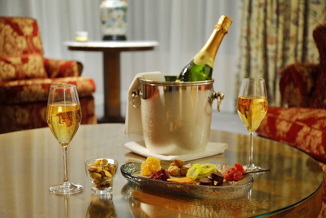 2.スパークリングワイン(1室につき1本)、ドライフルーツ6種・ナッツ・チョコレート