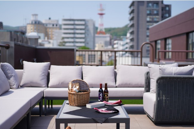 築100年の歴史的建造物を現代的感性で再生したブティックホテルUNWIND HOTEL&BAR小樽の4階に新しくテラスをオープンいたします。本イベント、「~Taste of Hokkaido~OSAワイナリーメーカーズテラスランチ」にて本オープンとなり、今後も様々なイベントを通して新たな出会いや体験ができる場創りをしてきます。土曜日、日曜日、祝日は11時30分~15時にランチ営業を行い、ホテルのレストラン「THE BALL」よりランチメニューをピクニックバスケットに入れて提供予定。150平方メートル のテラススペースには快適でスタイリッシュなソファ、テーブル、椅子を配置し、様々なシーンでご利用いただけます。爽やかで気持ちの良い北海道の気候と港町小樽の景色をご堪能ください。