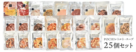 POCHIのトッピングフレンドリー商品、25袋を詰め込みました。お肉が楽しめるレトルトから、具だくさんのもの、食べやすいスープタイプまで、バラエティ豊かな内容です。色々な味や新しい味を試したい時におすすめです。通常価格10,652円から25.0%OFFの7,980円でのご提供です。