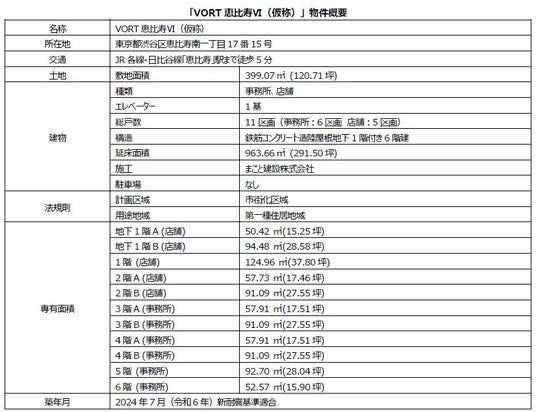 「区分所有オフィス(R)」を主軸に資産形成コンサルティングを行う株式会社ボルテックス(東京都千代田区 代表取締役社長 兼 CEO 宮沢 文彦、以下当社)は、「VORT恵比寿VI(仮称)」を取得しました。
