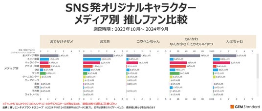 各キャラクターのメディアミックス展開もこうした推しファンの特徴比較に照らして見ることで、同じSNS発のキャラクターであっても差異をより詳細に掴むことができます。