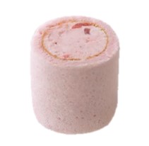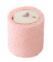 イチゴのゼリー、フランボワーズ、グロゼイユの果肉入りのふんわりイチゴクリームをキュートなピンクの生地で巻きました。果実のプチプチ食感が楽しい本格的な味わい。
