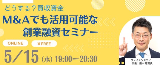 国内最大級の事業承継・M&Aプラットフォーム「TRANBI」を運営する株式会社トランビ(本社:東京都港区、以下「トランビ」)は、5月15日(水)19:00より、M&Aでも活用可能な創業融資セミナーを開催いたします。