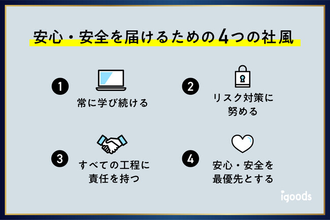 当社は上記のような体制・環境を整えていますが、いくら仕組み化されていたとしても品質管理を実行するのは「人」です。そのため品質を守る「社風づくり」にも力を入れています。